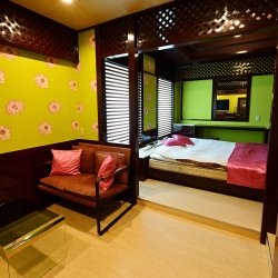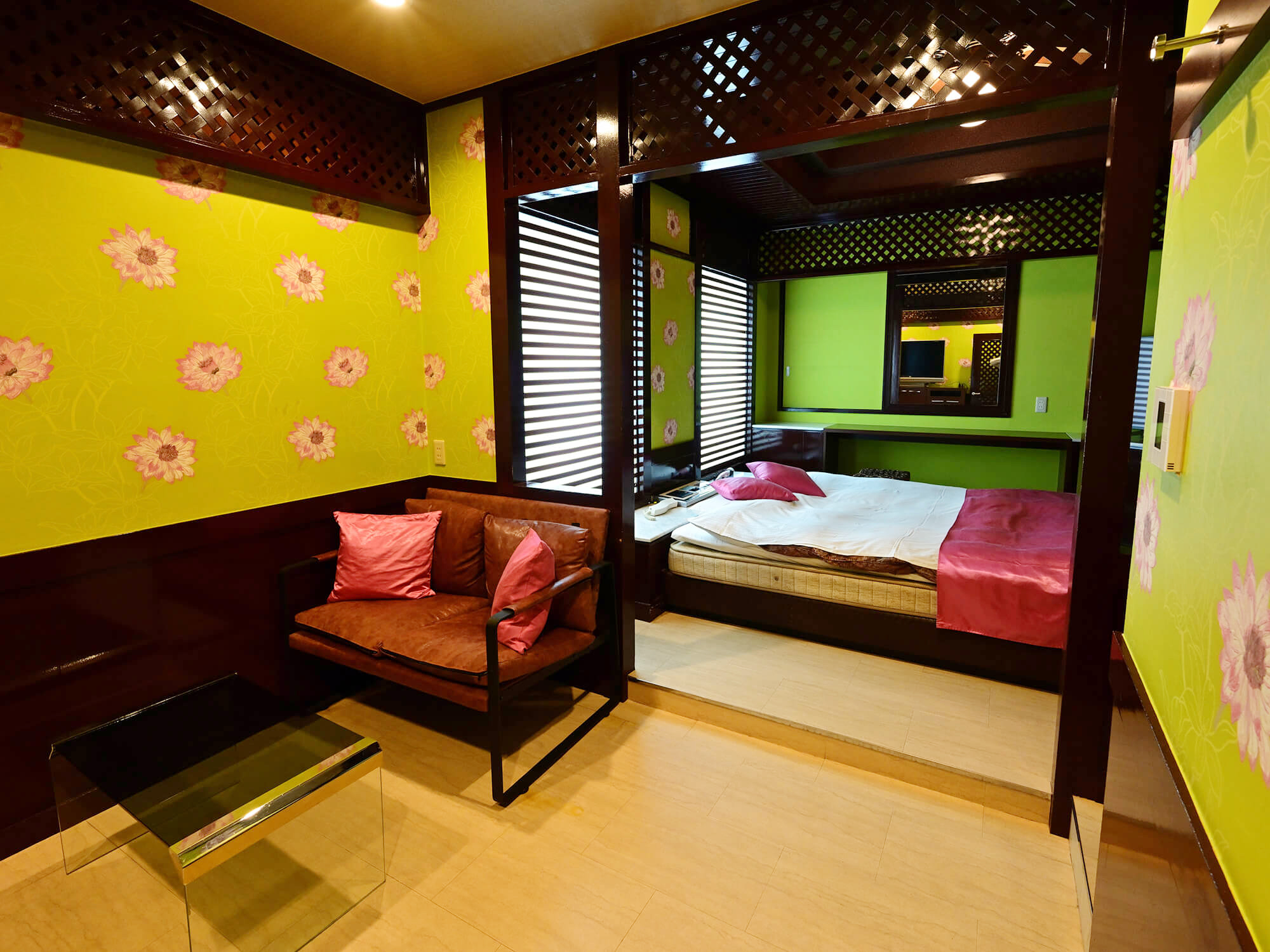 アジアンテイストでゆったりとした客室です。ドライサウナ完備!