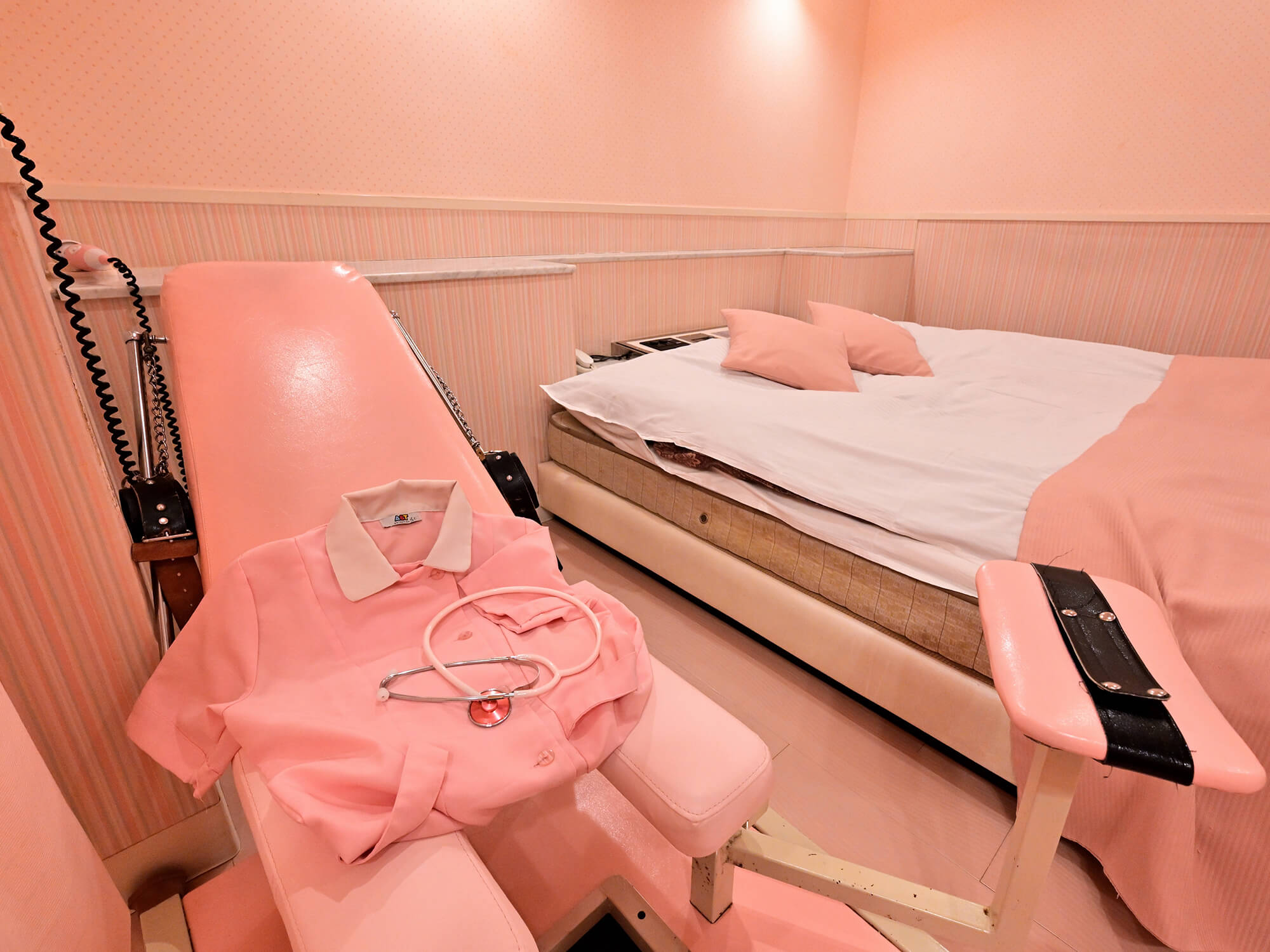 ラフィネオリジナルコンセプトルーム!インテリアはまるで本物の病室のよう。ナース服(レンタル)・聴診器(レンタル)・大人のおくすり、客室においております。